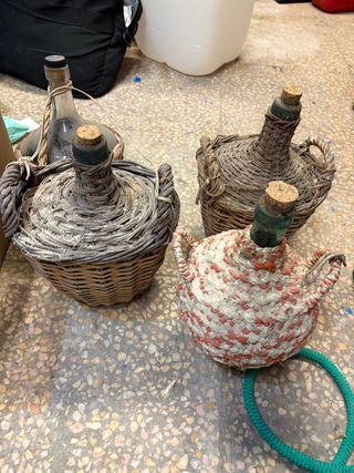 Botijos antiguos de vidrio y mimbre