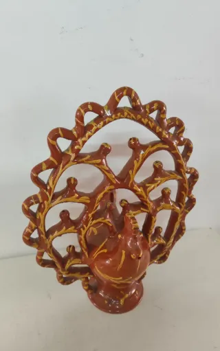 Botijo de cerámica artesanal con un diseño único de pavo real. - Color marrón y detalles en amarillo. - Figura decorativa. - Ideal para coleccionistas. 40cm 20260306/04