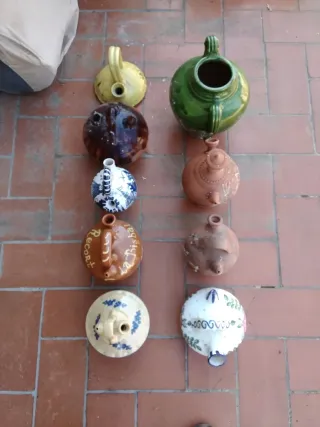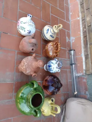 Colección de cantarros y botijos de cerámica, ideales para decoración. Precio unitario, según selección puedo bajar precio. Hay de esclusivos y firmados, precio 20 euros - Piezas de diferentes tamaños y diseños. - Material: Cerámica. - Ubicación: Altafulla.
