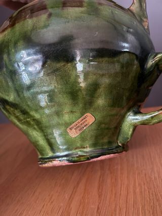 Botijo de cerámica verde y marrón