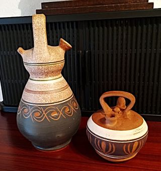 BOTIJOS ARTESANALES DE BARRO DECORADOS DE AÑOS 70'