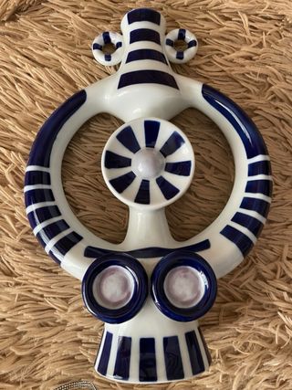 Botijo Indalo de cerámica en color negro. Una pieza decorativa con un diseño único. - Material: Cerámica. - Color: Negro. - Diseño: Indalo. Sólo mando por wallapop.