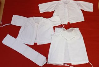 Lote compuesto por 4 prendas antiguas de lino, para recien nacido, una maravilla. Puntillas, boton de nacar, plisado en espalda. La cinta larga de lino adamascado se utilizaba para proteger la curacion del ombligo del bebe. Presenta desgaste en algun punto. Más artículos de textil en mi perfil. # Indumentaria, attrezzo, teatro, cine, vestuario tradicional, puntas, puntilla, encaje, punta, bolillos, ganchillo. Tencantavintage.