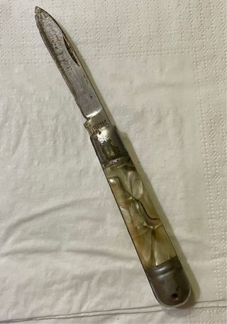 Preciosa pieza única para coleccionistas. antiguo de acero con mango de nácar. Presenta señales de uso, añadiendo a su encanto. - de acero hecha en albacete - Mango de nácar con diseño elegante. - Cierre de botón clásico.