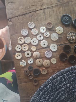 Gran variedad de botones de diferentes tamaños, formas y materiales, perfectos para manualidades, costura o coleccionismo. - Botones de plástico, metal y nácar. - Diseños clásicos y modernos. - Ideal para proyectos creativos, hay algunos súper chulos para hacer anillos.