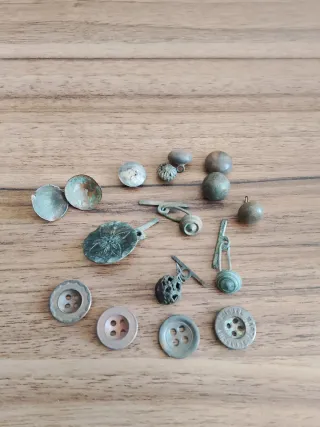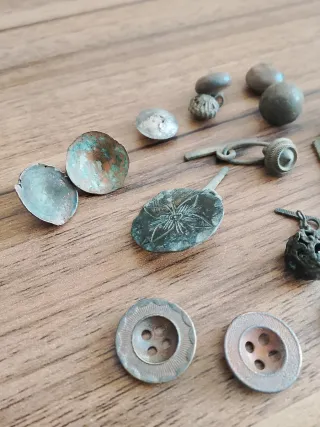 190 botones antiguos, romanos, árabes, medievales, contemporáneos, de cobre ,plata, y uno de nácar