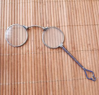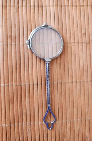 De finales siglo XIX, principios s. XX Impertinentes con mecanismo botón para plegar funcionando. Son totalmente de plata. Mango azul. Se envían o entregan en mano. #impertinentes #impertinentesplata