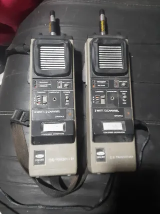 Se venden dos walkie talkies C.B. Transceiver de la marca GREAT. Son modelos antiguos.para colección,encienden pero no tengo ni idea como funcionan pero se escucha las emisoras cuando aprietas el botón.y se puede negociar....están completos... - 3 Watt / 3 Channel. - Condenser Microphone. - Incluyen antena y correa.