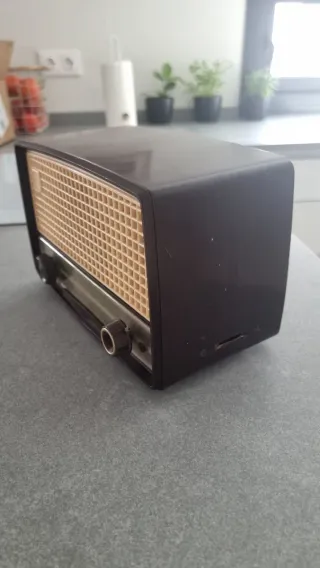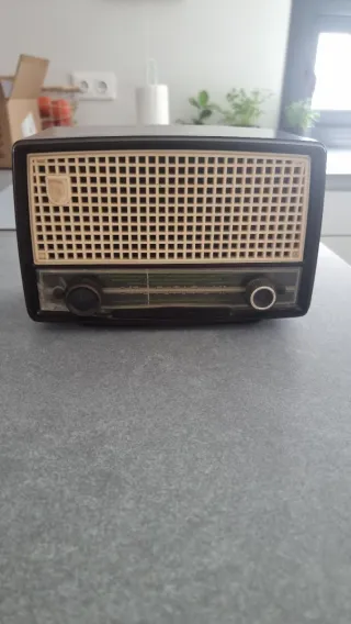 Radio antigua Iberia en buen estado estético. Se vende tal cual se ve en las fotos. Falta un botón, pero la enchufas y la pantalla se enciende. - Radio de diseño clásico. - Color marrón oscuro y crema. - modelo B250