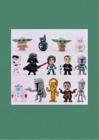 Set de 14 figuras coleccionables de Star Wars: The Mandalorian. Son figuras pequeñas y detalladas, ideales para cualquier fan. - Incluye personajes como Grogu (Baby Yoda), Darth Vader, Mandalorians y otros. - Perfectas para decorar o para jugar. - Están nuevos