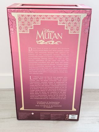 Muñeca Edición Limitada de Mulan. Comprada en shopdisney. Nunca manipulada ni sacada de la caja. En perfectas condiciones, tal y como se ve en la imagen. Original.