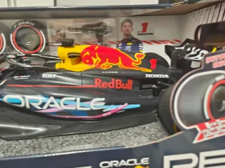Réplica a escala 1:10 del coche Red Bull Racing RB19 de Max Verstappen. - Incluye mando a distancia. - Incluye figura de Max Verstappen. - Incluye set extra de ruedas. - Incluye herramienta Pit Pro Tool. - Diseño con logos de Oracle, Red Bull, y otros patrocinadores.