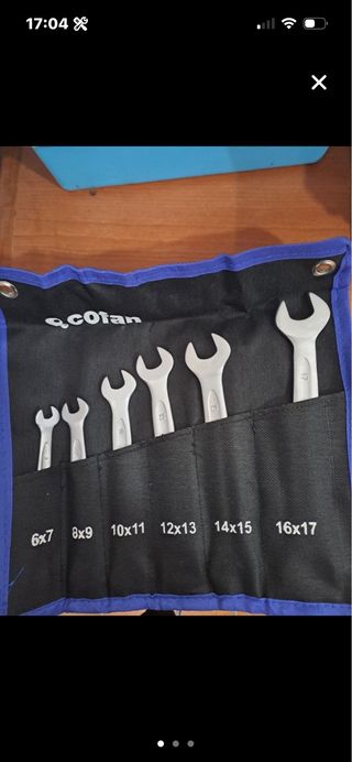 Pack de llaves fijas métricas de diferentes tamaños. - Incluye llaves de 6x7, 8x9, 10x11, 12x13, 14x15 y 16x17. - Vienen organizadas en un estuche enrollable.
