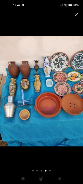 Conjunto de piezas de cerámica decorativa con diseños variados - Variedad de jarrones y platos. - Elementos de cerámica artesanal. - Ideal para coleccionistas.