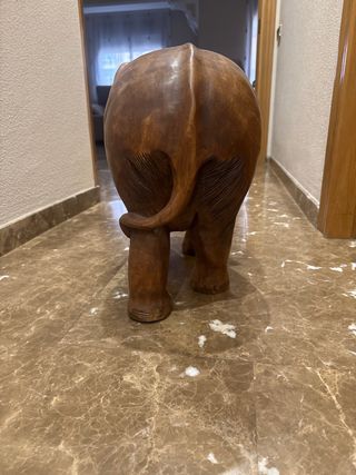 Figura decorativa de un elefante, elaborada en madera. - Detalle de tallado en la trompa. - Diseño robusto y detallado.