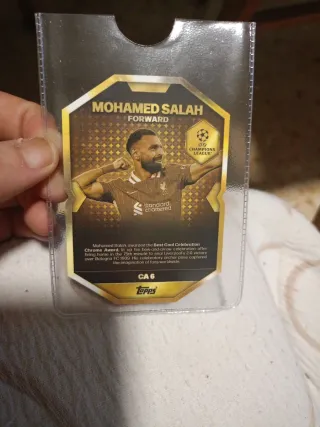 Tarjeta de colección de Mohamed Salah, Mejor Celebración de Gol. - Edición Chrome Winner. - Incluye Match Attax Fan Award. - Marca Topps.