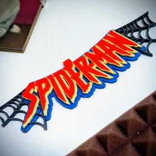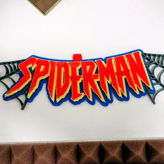 Logo de Spiderman impreso en 3D con PLA de máxima calidad a todo color. -Tamaño 24 cm de ancho