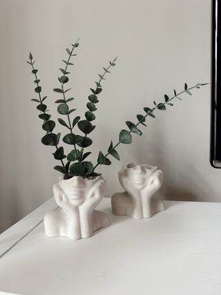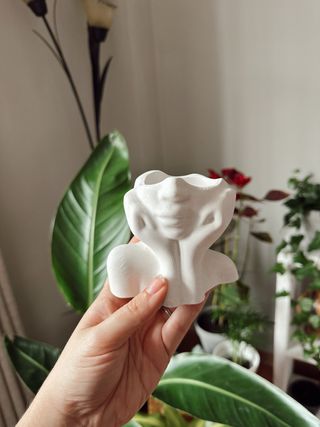 Figura decorativa artesanal con forma de busto femenino. Perfecta como macetero artificial - Diseño único. - Acabado blanco mate.