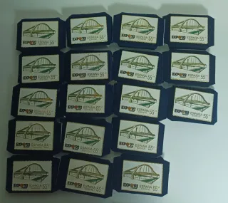 Lote de 33 pines conmemorativos de la EXPO 92 celebrada en Sevilla, España. Cada pin muestra un diseño del puente de la Barqueta. - Diseño: Puente - Temática: EXPO 92 Sevilla - País: España - Valor: 55 ptas.