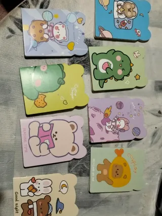Conjunto de 16 por 4€ minilibretas con diseños Kawaii. - Diseño de oso con traje. - Diseño de astronauta. - Diseño de gato. - Diseño de oso blanco. - Diseño de dinosaurio. - Diseño de panda. - Diseño de dinosaurio Cutie Dragon.