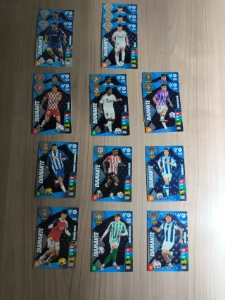 Colección de cartas de fútbol Diamante de las temporadas 2018-19 y 2019-20. - Incluye cartas de jugadores como Kang In Lee, Ferran Torres, Zubeldia, Isak y Brais Méndez. - Cartas con diseño brillante y detalles de alta calidad.