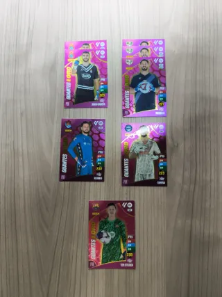 Colección de cartas de la liga de fútbol español, temporada 2019-20. - Incluye cartas de porteros de la colección Guantes de Oro. - Jugadores incluidos: Dmitrovic, Diego López, Vaclik, Fernando Pacheco, David Soria y Rubén.