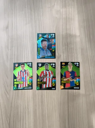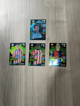 Lote de cartas de fútbol. - Incluye 3 cartas New Master: Julián Álvarez, Djalo y Dani Olmo. - Incluye 1 carta Master Mister: Diego Pablo Simeone.