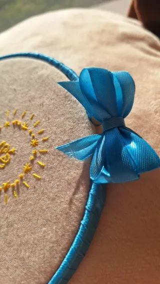 Precioso bastidor con bordado de la Virgen. Ideal para colgar o regalar. - Bordado a mano. - Detalles en hilo dorado y azul. - Incluye cinta azul para colgar. -Todos los colores son personalizables al igual que el tamaño (dependiendo del tamaño el precio sube) Tamaño el bastidor de la imagen 15 cm.