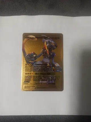 Carta fan Pokémon dorada de Mewtwo. - Diseño especial y brillante. - Ataque Contractac y Nova Mente GX.