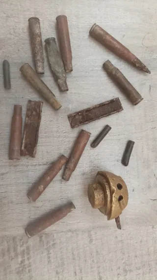 Objetos variados, inertes. Máuser, 7 y 7,92, Cárcano, espoleta Silvia. Las fotos son parte de la descripción, solo se envía por inpost.