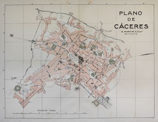 Antiguo plano de la ciudad de Cáceres (Extremadura). Procedente de 'España Regional' editado entre 1913 y 1919 por Alberto Martín en Barcelona. Medidas: 50 x 37 cm. Buen estado, ligeramente amarillento por los más de 100 años transcurridos desde su edición. Precioso recuerdo de la España que se nos fue. ORIGINAL de 1913, no es copia ni reimpresión posterior AGRUPO ENVÍOS. P-4