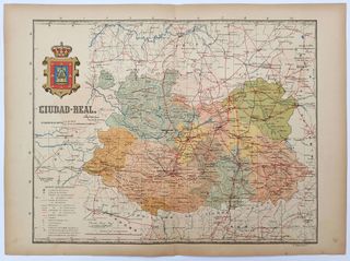 Antiguo mapa de la provincia de Ciudad Real Procedente de 'España Regional' editado entre 1913 y 1919 por Alberto Martín en Barcelona. Medidas: 51 x 37 cm. Mapa a doble página con datos en el reverso de ayuntamientos, población, coordenadas geográficas, etc. Buen estado, ligeramente amarillento por los más de 100 años transcurridos desde su edición. Mapa ORIGINAL de 1913 no es copia ni reimpresión posterior. Agrupo envíos. M-3.