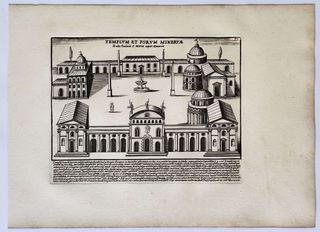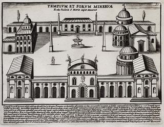 Magnífico grabado de 1699 de Pietro Santi Bartoli (Petrus Sanctius Bartolus) titulado Templo y Foro de Minerva "Minerva Templum et Forum" de la obra: "Romanae magnitudinis Monumenta, quae urbem illam orbis dominam velut redivivam exhibant posteritati veterum..." de Domenico de Rossi (1659-1730) con grabados de Pietro Santi Bartoli (1635-1700). Muy buen estado de conservación, con ligeras manchas de foxing. Impresión nítida y clara en papel grueso de calidad con marca de agua. Medidas: 40 x 27 cm. ORIGINAL de 1699 (siglo XVII), no es copia ni reimpresión posterior. AGRUPO ENVÍOS.
