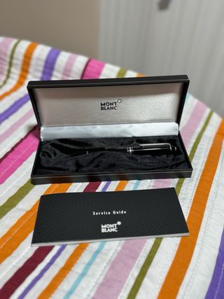 Bolígrafo rollerball Montblanc Meisterstück Clásico con revestimiento dorado. - Diseño elegante en color negro. - Detalles dorados. - Incluye funda protectora de terciopelo rojo de Cartier ya que no tiene caja.