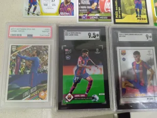 Colección de cromos de fútbol de jugadores del FC Barcelona. - Incluye cromos de Lionel Messi. - Incluye cromos de Lamine Yamal. - Incluye cromos de Pedri. Incluye cromo Iniesta megacrcks . - Cromos de diferentes colecciones y años. Cromos gradeados y normales ... Muy buen estado . Cromos selectos y megacrcks .... 2004 y simbólicos...