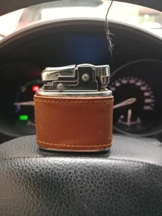 Mechero de gasolina con un elegante acabado en cuero de la marca Jim Beam. - Mecanismo de gasolina. - Funda de cuero.