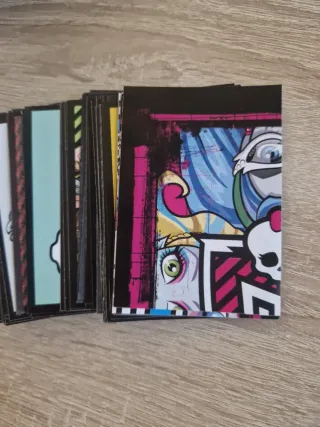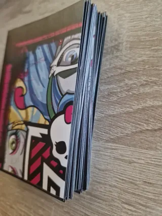 Colección de cromos de Monster High. Perfectos para coleccionistas y fans de la serie. - Diseños coloridos y vibrantes. - Personajes icónicos de Monster High. Se venden 5 cromos por 1€.