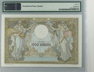 Billete de 25 dinares de Irak, emitido en 1978. Certificado por PMG con una calificación de 65 EPQ (Gem Uncirculated). - Banco Central de Irak. - Pick# 66a 1978 / AH1398. - Marca de agua: Cabeza de caballo. - Número de serie: 0594557 AYKH/17. - Firmado por el Sign. #19.
