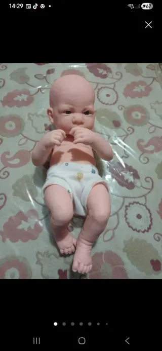 Preciosa figura de un niño Jesús en su cuna, con un diseño antiguo.28 cm de largo ,niño Jesús,ha si do retocado en una de sus manos - Figura de niño Jesús. - Presentado en una cuna con heno. - Detalles en dorado en la aureola.