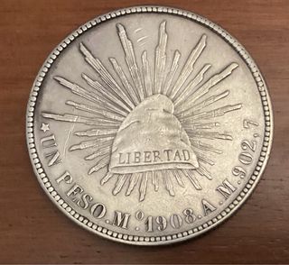 Moneda conmemorativa de 1 Sol de Perú, acuñada en el año 1924. Presenta un diseño detallado con la figura de la Libertad. - Diseño: Libertad sentada con gorro frigio y bastón. - Inscripción: FIRME Y FELIZ POR LA UNION y UN SOL. - Reverso: Escudo de Perú con laureles y fasces.