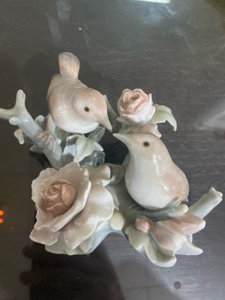 Preciosa figura de porcelana que representa dos ruiseñores posados en una rama con rosas. - Diseño detallado y delicado. - Tonos suaves y realistas. - Ideal para coleccionistas o como elemento decorativo. Lladro
