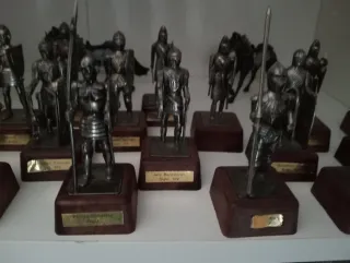 Conjunto de sacapuntas con figuras de caballeros medievales. - Figuras detalladas de guerreros. - Bases de madera para cada figura. - Piezas de colección.19 figuras