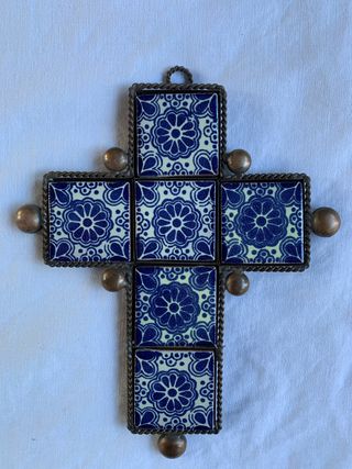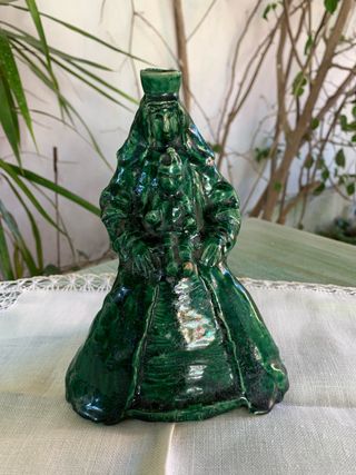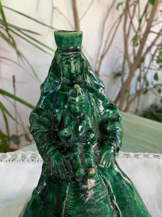 muy antigua imagen en ceramica artesanal y firmada ,una reliquia .