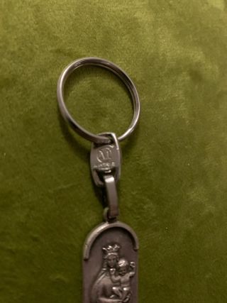 precioso llavero de la virgen con niño ,de la firma ,Martenau france,nuevo a estrenar .