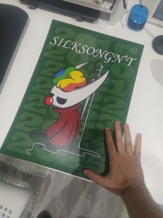 Mini print del meme de Silksong (Hollow Knight). Hecho por mí. Tamaño A5.