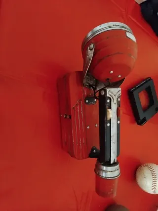 Linterna antigua de color rojo con detalles metálicos. - Diseño vintage. - Cuerpo principal acanalado. - Reflector metálico en la parte superior.