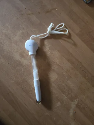 Bolígrafo vintage divertido para crear pompas de jabón. Ideal para juegos al aire libre. - Diseño blanco con detalles transparentes. - Incluye cuerda para colgar.