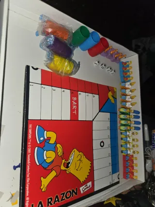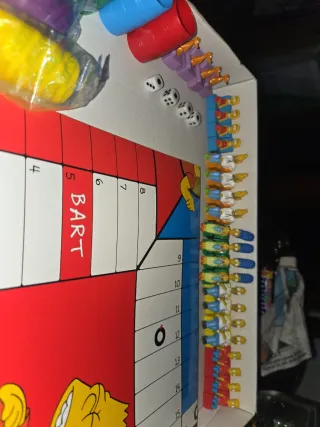 Juego de mesa El Parchís con temática de Los Simpsons. Incluye tablero y fichas. Nuevo sin uso .la caja esta añgo pintada por lo de mas juego dw coleccion!!! - Personajes de Los Simpsons. - Tablero con diseño de Bart Simpson. - Fichas de colores.
