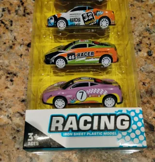 Set de 6 coches de metal con diseños variados y llamativos.para coleccionista - Diseño de carrocería moderno. - Modelos de carreras. - Apto para mayores de 3 años.