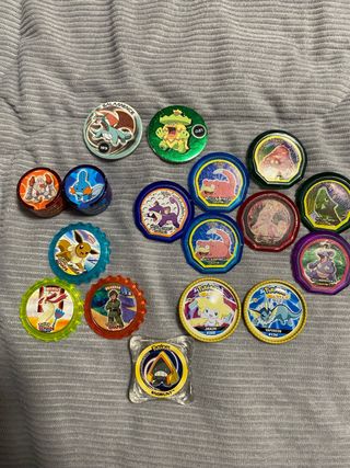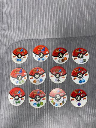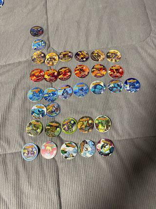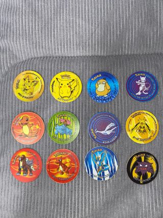 Lote de tazos de Pokémon. - Incluye varios diseños de Pokémon. - Ideal para coleccionistas.